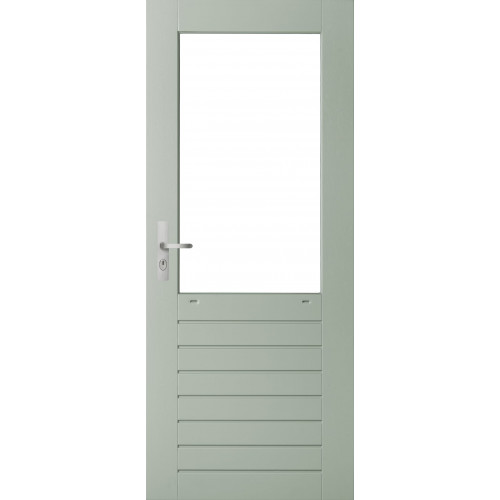• WEEKAMP STAPELDORPELDEUR WK048 93 X 2115 CM DEURDIKTE 38 MM BORSTWERINGHOOGTE 874 MM FSC® HARDWOOD VOL GEVINGERLAST GEGROND RAL 7035 VENTILATIESLEUVEN ISOGLASLATTEN